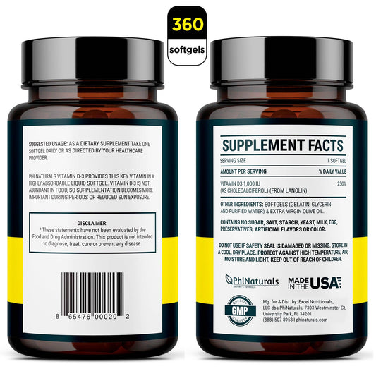 Vitamin D3 1000 IU (365 Softgels)